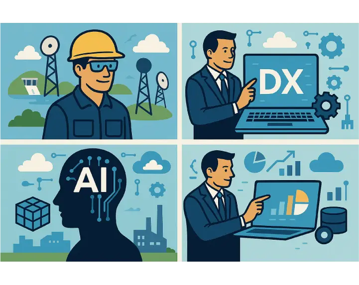 情報通信技術部は、電力の安定供給やお客さまサービスの向上、業務の効率化・高度化といった経営基盤の強化を支えるため、重要な役割を担っています。高い信頼性を確保する自社構築の「通信ネットワーク」の計画・開発・保守・運用管理を行うとともに、社内業務の効率化・高度化を目的とした「情報システム」の企画・開発・運用を担当しています。さらに、デジタル技術を活用した業務プロセス改革や、変化に挑戦し続けるための意識改革を推進する全社DXの統括部門として、各部門を横断的にリードしています。加えて、電力制御領域の安全・安定運用を確保する情報セキュリティの統括部門として、社会インフラを守る重要な使命を果たしています。