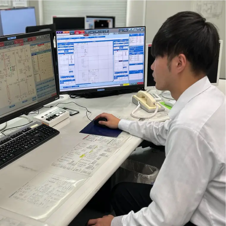 3交替勤務で24時間365日をローテーションで送電線に流れる電圧・電流の監視、保守作業に伴う電力設備停止・運転に関わる系統操作、電力系統の故障発生時の対応などを行っておりました。