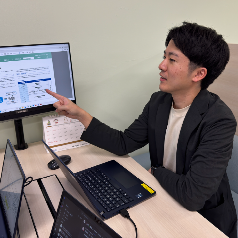 - 各種法令や他社事例等の情報を整理し、制度案の検討を行います。併せてその内容を会議資料に落とし込んでいきます。