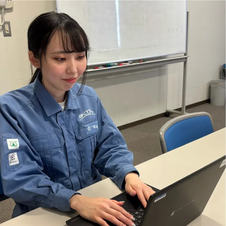 日頃より業務面でご指導いただいている先輩方への感謝を胸に、一人前の社員となり、恩返しできることを目標としております。現時点ではまだご助力をいただくことが多い状況ですが、将来的には先輩方が安心して業務を任せられる、頼もしい存在となるべく努めていきます。そのため、設備に関する知識の習得を継続し、現場経験を積み重ねることで、専門性と実務力を高めたいと考えています。