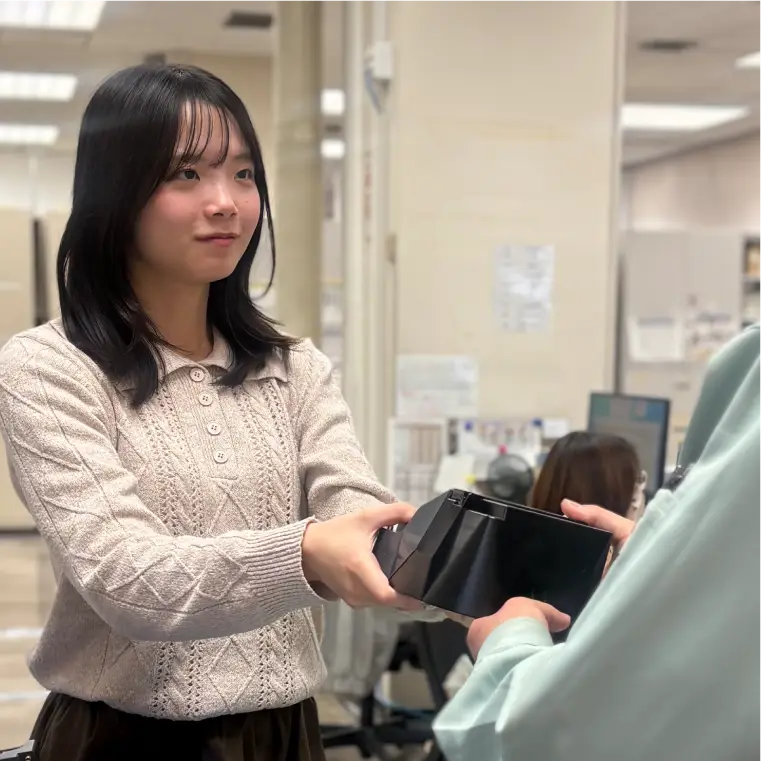現在の目標としては、常に業務知識を蓄えながらも自分の仕事だけではなく、職場全体を見て発言・行動し、職場のためにいい影響を与えられる社会人になることです。そのために、これまで一緒に働いてきた方々の良い所を吸収し、日々謙虚に、向上心を忘れることなく仕事に励みたいです。