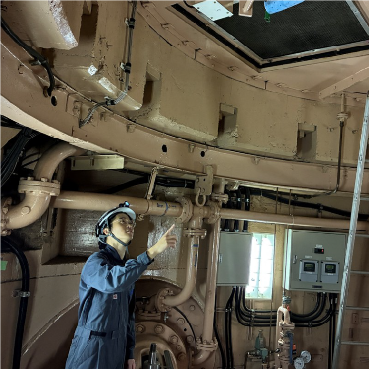 この仕事の面白さは、机上の知識や理論だけでなく、発電所に出向して培われる経験や勘といった現場力が求められる点です。特に故障対応や異常の事前発見では、ベテランの判断力により早期解決する場面を何度も目にしました。私自身も現場力を備えた技術者へ成長したいと考え、日々業務に取り組んでいます。
