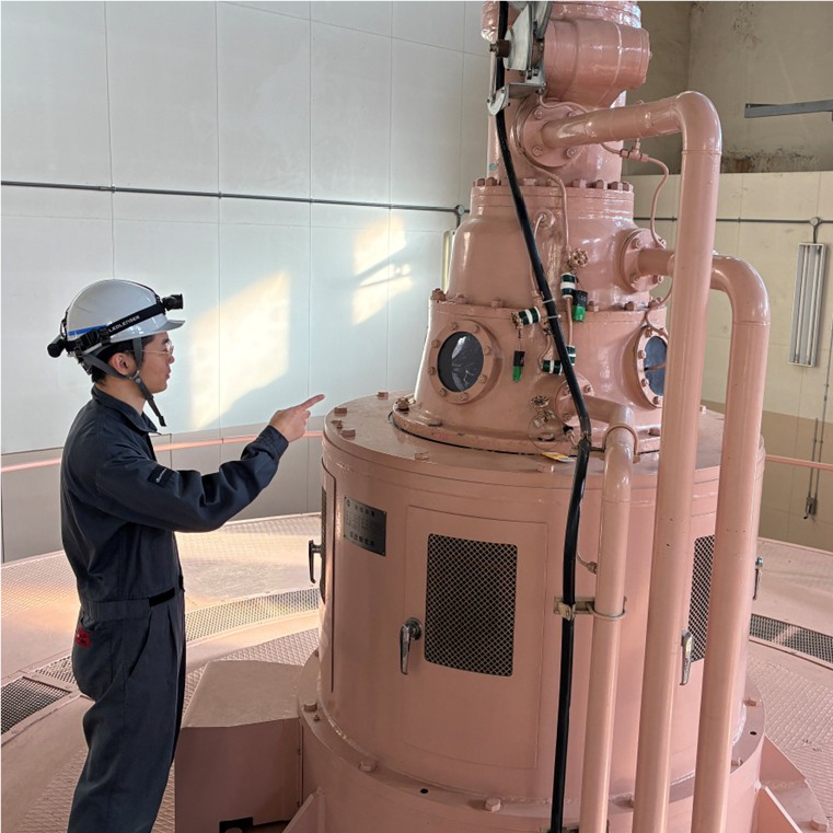 現在担当している業務は、水力発電所の保守・点検です。日々の業務では、発電所の状態を監視・点検し、異常があれば即座に対応を行っています。長期的には、計画的な点検や設備更新を行い、異常を未然に防ぐことに加え、大規模な更新に合わせて水車発電機の機能向上や最適化を図ることを行っています。